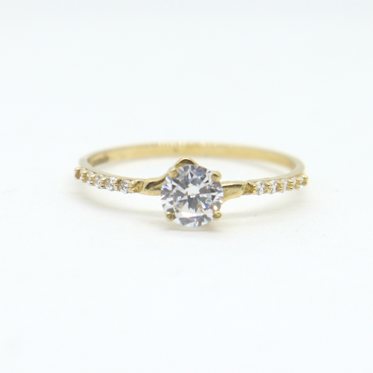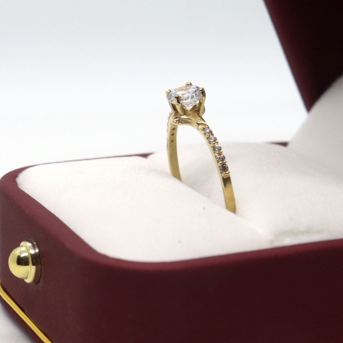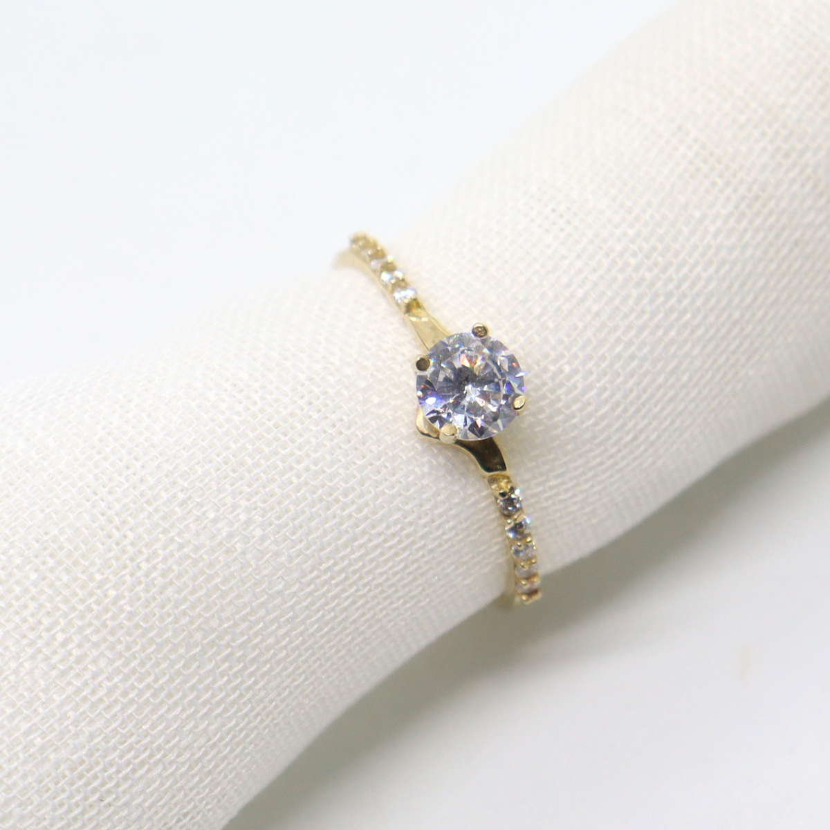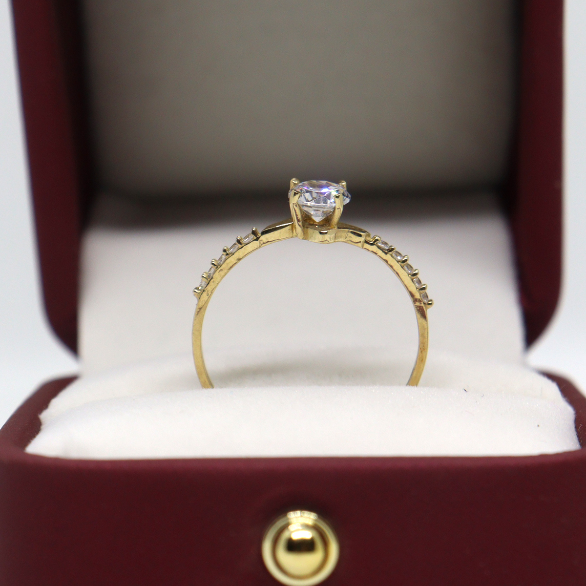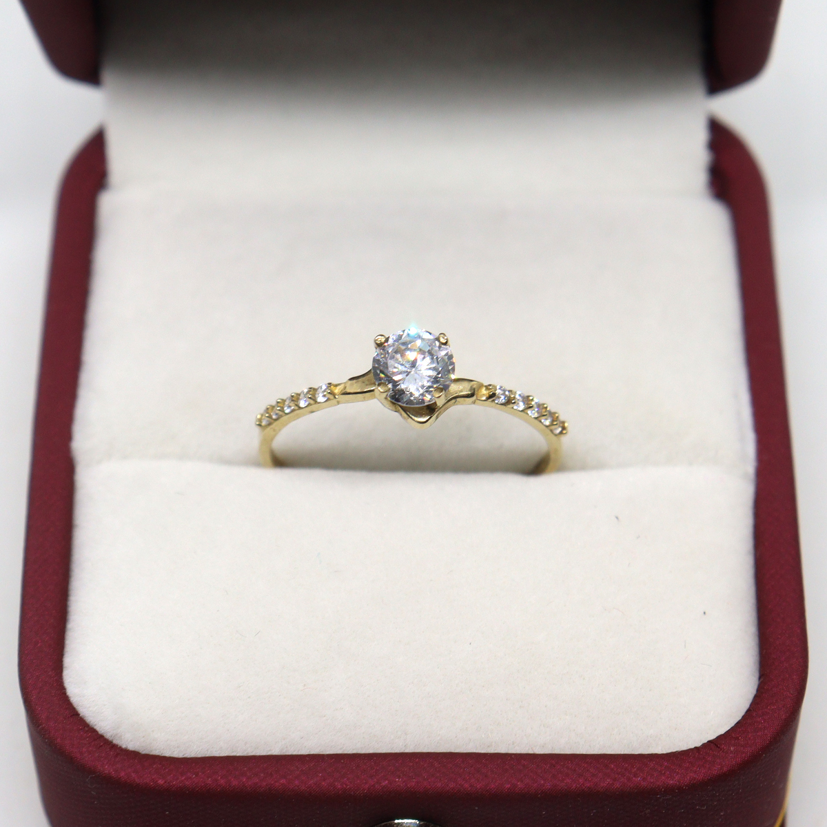 Anillo de compromiso “SWEET LOVE” en oro 10K, una joya delicada y elegante diseñada para simbolizar un amor tierno y eterno. Cuenta con piedras laterales que realzan su brillo y aportan un toque de sofisticación. Su diseño refinado convierte este anillo en la elección perfecta como anillo de compromiso, promesa de amor o regalo especial para esa persona única. Una pieza atemporal que combina estilo, significado y luminosidad en cada detalle.