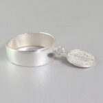 El aro del anillo presenta un diseño liso y minimalista que aporta equilibrio a la pieza. Esta simplicidad permite que el dije sea el elemento central del diseño, creando una estética armoniosa que destaca por su delicadeza. Gracias a esta estructura, el anillo de plata 925 con san benito mantiene un estilo versátil que puede combinarse fácilmente con otras joyas.