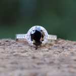 El aro del anillo incorpora pequeños detalles brillantes a los lados, lo que añade un toque extra de sofisticación. Este diseño permite que la pieza mantenga un estilo equilibrado, donde cada elemento complementa al otro para crear una joya armoniosa.