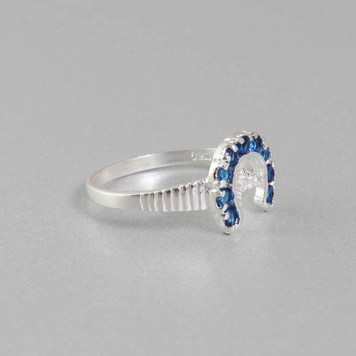 Anillo herradura plata 925 con zirconias azules