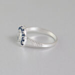 Las zirconias azules del anillo herradura plata 925 reflejan la luz de manera delicada, creando un efecto luminoso que hace que el anillo destaque sin perder su estilo fino y sofisticado. Estas piedras son muy apreciadas en la joyería por su apariencia brillante y su capacidad para aportar un toque de lujo a cualquier diseño.