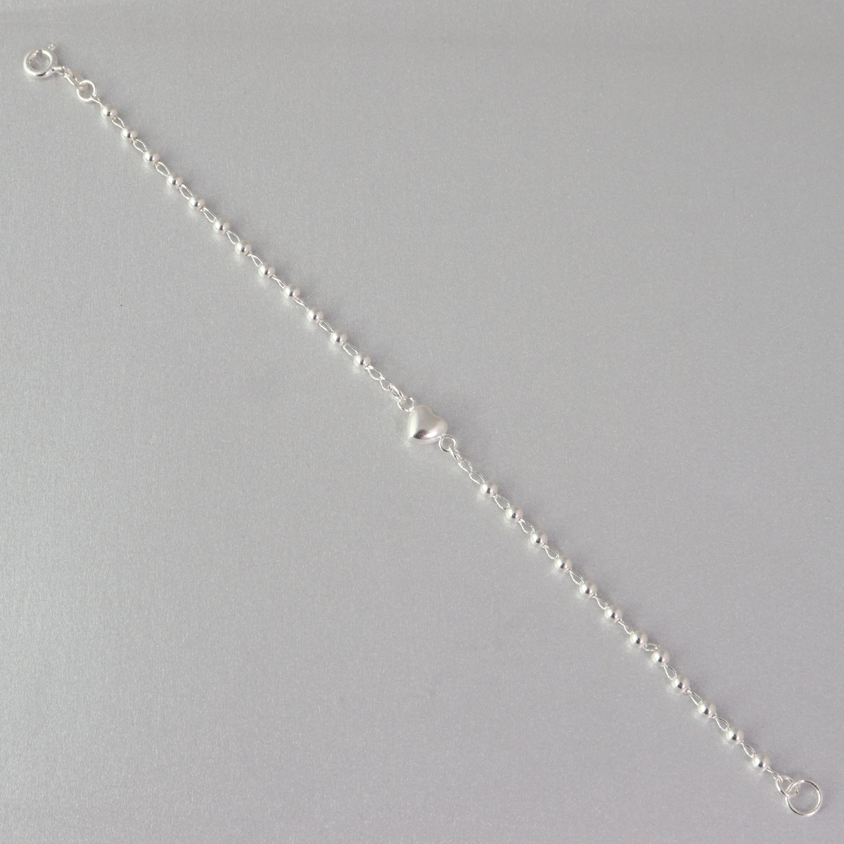 El diseño de esta pulsera de plata 925 combina pequeñas esferas distribuidas de manera uniforme a lo largo de la cadena, creando una textura visual armoniosa y sofisticada. Cada elemento ha sido cuidadosamente integrado para que la pulsera de plata 925 luzca equilibrada, estilizada y femenina. Las esferas aportan dimensión y un brillo adicional que realza el encanto natural de la pulsera de plata 925, convirtiéndola en una pieza versátil que se adapta fácilmente a distintos estilos.
