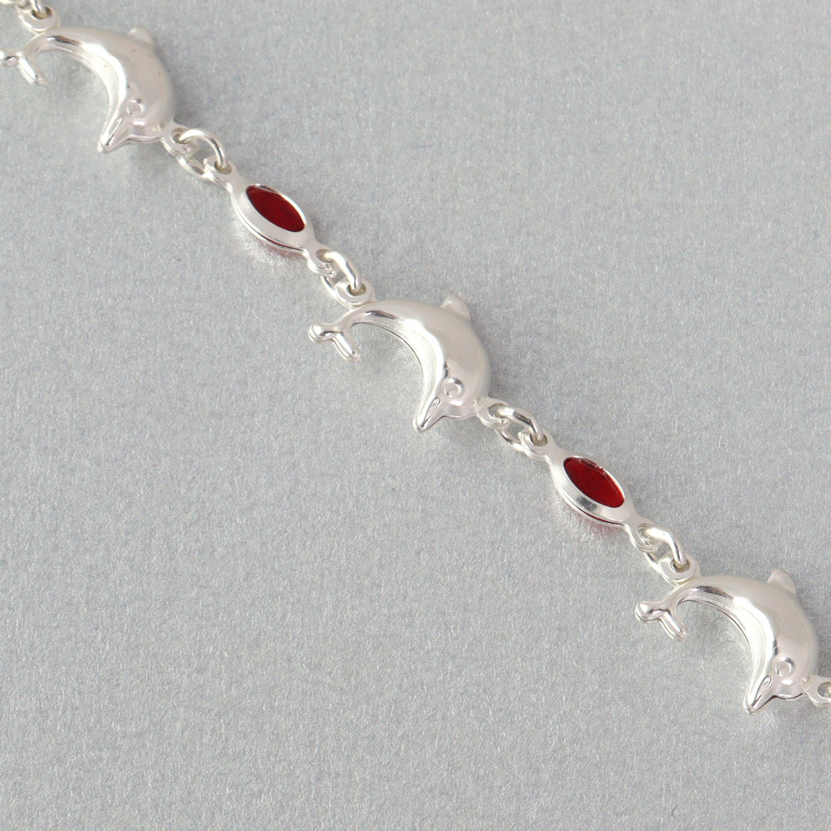La Pulsera Delfín Carmesí es una encantadora pulsera de plata 925 que combina elegancia, simbolismo y un toque de color intenso. Elaborada en plata .925 garantizada, esta pulsera de plata 925 destaca por su brillo natural y su acabado pulido, que resalta cada detalle del diseño con una luz sofisticada y duradera.