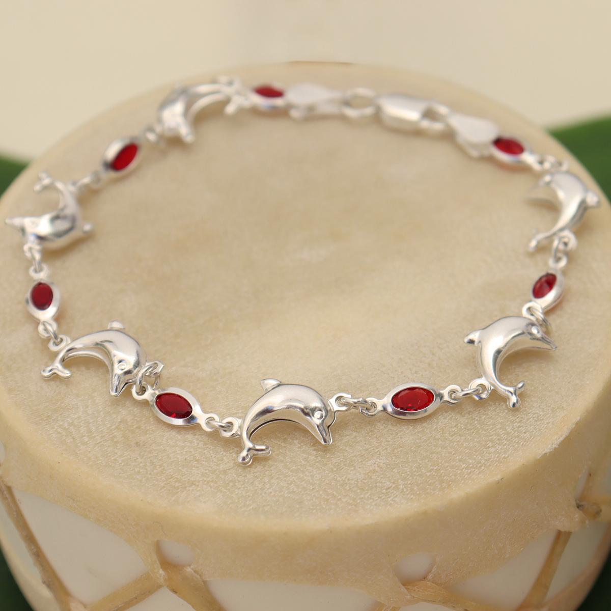 La Pulsera Delfín Carmesí es ideal para quienes buscan una pulsera de plata 925 diferente, con un diseño simbólico y un toque de color que destaque. Perfecta para regalar o para consentirte, esta pulsera de plata 925 es una pieza versátil que complementa desde atuendos casuales hasta looks más elegantes, convirtiéndose en un accesorio imprescindible en cualquier colección.